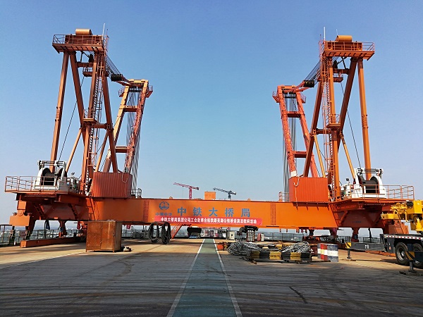 800噸架梁起重機采用雙臂架桅桿式結構,在集團公司50噸、60噸、 70噸、120噸、400噸桅桿式起重機的基礎上向前大大地邁進了一步,是集團公司有史以來最大的桅桿式起重機,也是目前國內最大規模的變幅式架梁起重機。800噸架梁起重機既可吊裝箱梁,又可吊裝桁梁,安裝對位靈活、精確,特別適用于箱桁組合梁段的吊裝。