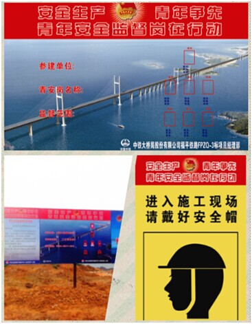 平潭橋項目部團工委通過組織各級團干部認真學習黨和國家的安全生產方針,廣泛開展安全宣傳教育,在項目全線青年職工中達成了廣泛共識:團組織抓安全,既不能當“配角”,又不能當“替角”,而是要擺正位置,發揮優勢,與其他部門同唱一臺戲,共走一盤棋,動員團員青年立足本職崗位抓安全,在安全形勢穩定時,敲好“警鐘”,當好“觀察員”;安全形勢被動時,打好“鑼鼓”,當好“鼓動員”;安全形勢遇到急難險重任務時,打好“先鋒”,當好突擊員。