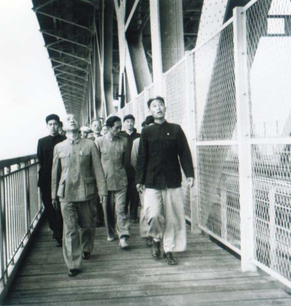 1957年,國務(wù)院副總理李富春視察武漢長江大橋。