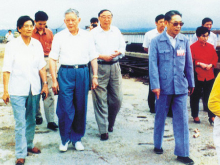 全國政協副主席葉選平視察到九江長江大橋工地視察。