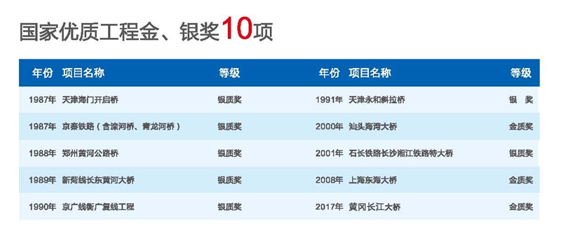 國家優質工程金、銀獎(10項)—截至2018年8月