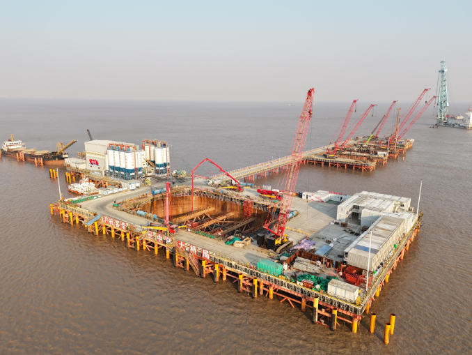 杭州灣跨海鐵路大橋北航道橋9號主塔承臺施工現(xiàn)場。受訪者供圖