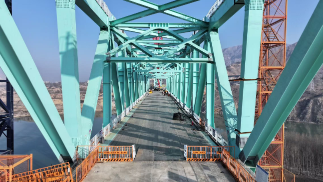 作為川青鐵路全線重點橋梁工程之一,尖扎黃河特大橋是我國第一座跨越黃河的鐵路鋼桁拱橋。它不僅是交通建設的壯舉,更是守護生態、造福百姓的標志性工程。“橋梁總長1596.20米,主橋共設計50個節間,每個節間的桿件通過拱上吊機吊起,用高強螺栓連接,如同在高空中拼積木。”中鐵大橋局西成鐵路項目部書記瞿小荃告訴記者,目前黃河北岸已經完成第14節間架設,南岸完成第11節間架設,一共完成25個節間架設,工程進度超過50%,預計2025年7月份實現合龍。3D打印技術、測量設備TS30全站儀、沉降變形觀測設備等技術的運用,讓尖扎黃河特大橋的建設制造變“智造”。