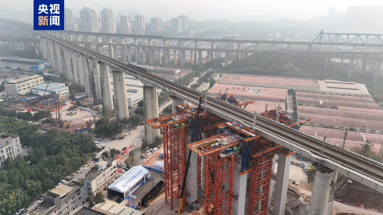 12月27日,隨著滬蓉線新井口嘉陵江特大橋T梁穩穩落在新建門式墩鋼連梁支座上,成渝中線高鐵重慶樞紐井口雙線特大橋下穿滬蓉線完成“托梁換柱”。