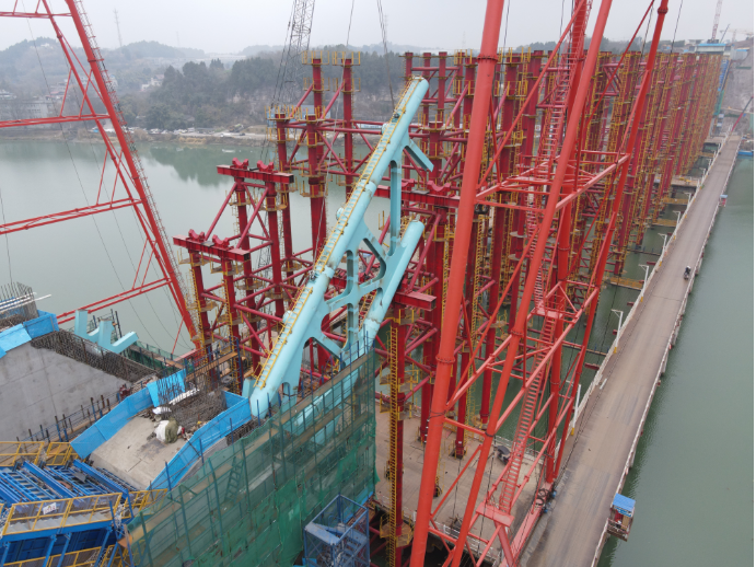 近日,中鐵大橋局承建的新建成渝中線高鐵(四川段)站前5標沱江特大橋首片主拱成功架設,這座世界最大跨度無推力組合拱橋正式進入主拱架設階段。